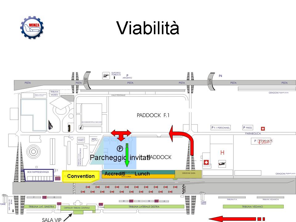 ATTENZIONE: Per visualizzare il percorso da seguire all’interno dell’Autodromo per raggiungere i parcheggi e la sala convegni è possibile fare clic Qui.